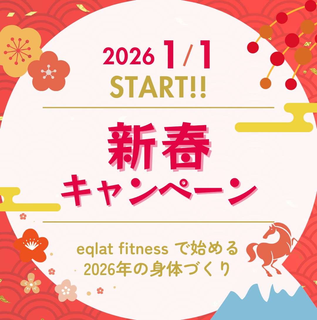 もうそろそろ年末年始ということで、eqlat fitness では 2026/1/1 より新春キャンペーンが始まります!🌅